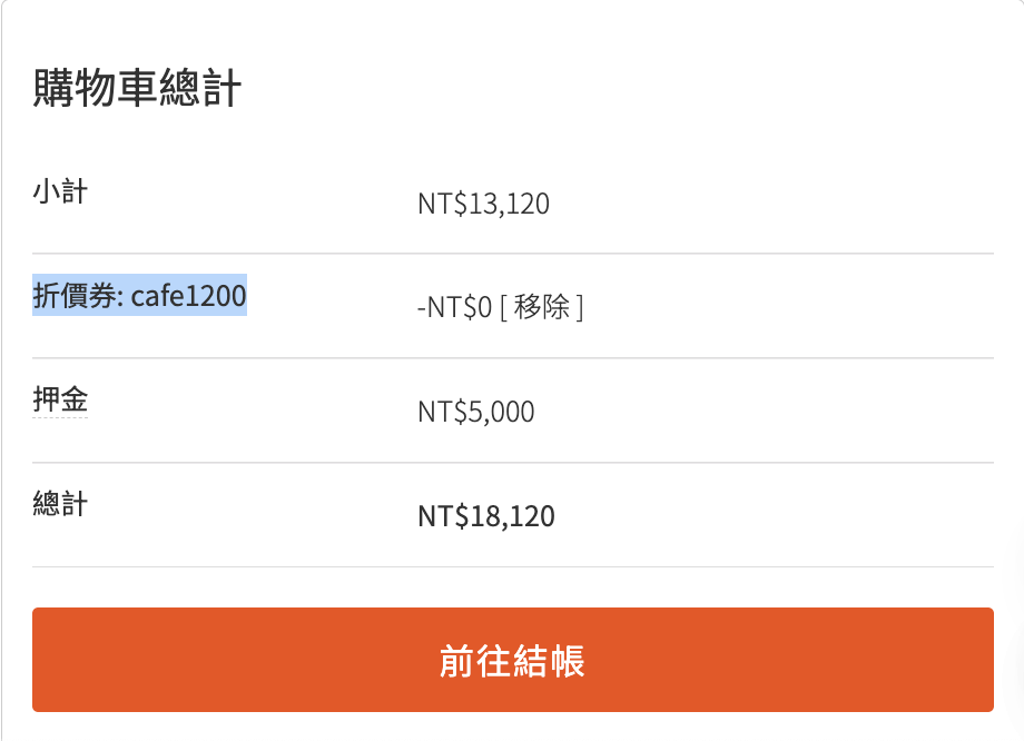 下單金額(不含押金)